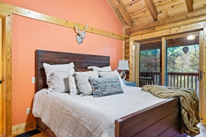 -Master Suite with fireplace and walk in shower, soaking tub, porch, Futon sofa bed